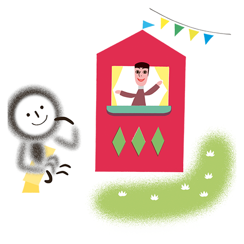 Un loup met son nez, puis son œil, son autre œil, ses oreilles et ses grandes dents… La célèbre comptine «Loup y es-tu, entends-tu?» est ici reprise dans une mise en scène inattendue, exquise et décalée.