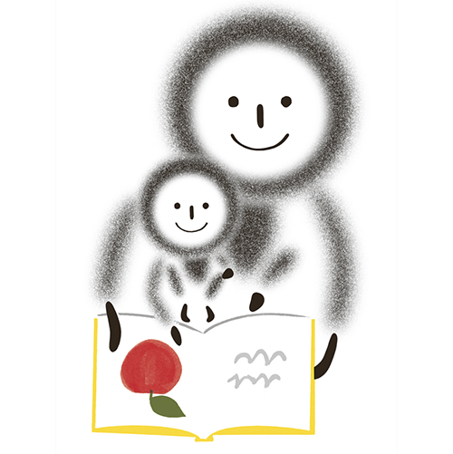 Cet album en carton, au graphisme épuré, composé en partie d’onomatopées, montre le cycle de la vie. Les plus petits apprécieront le rythme simple et percutant, les couleurs vives, notamment le rouge de ces pommes appétissantes.