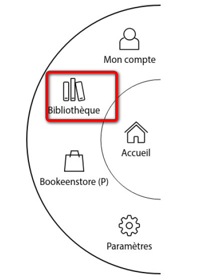 Appuyez sur le bouton central situé à droite de votre écran afin de faire apparaître le menu complet, puis sur Bibliothèque. La liste des ouvrages présents (empruntés ou achetés) apparaît.