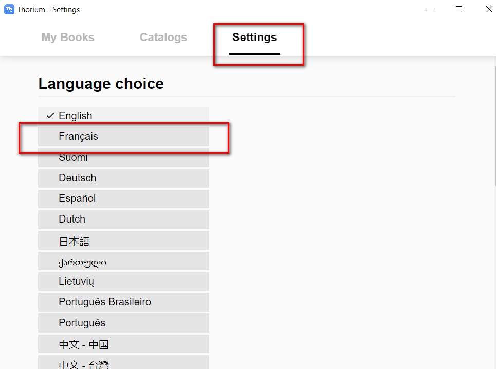 Vous pouvez faire un clic-droit sur le livre et lui demander de l’ouvrir avec Thorium.