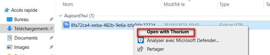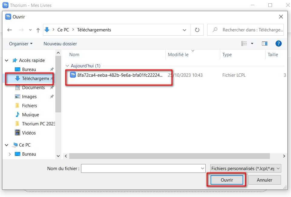 Allez chercher dans le fichier des téléchargements le livre (on notera que le logo de Thorium lui est rattaché) puis cliquez sur Ouvrir.
