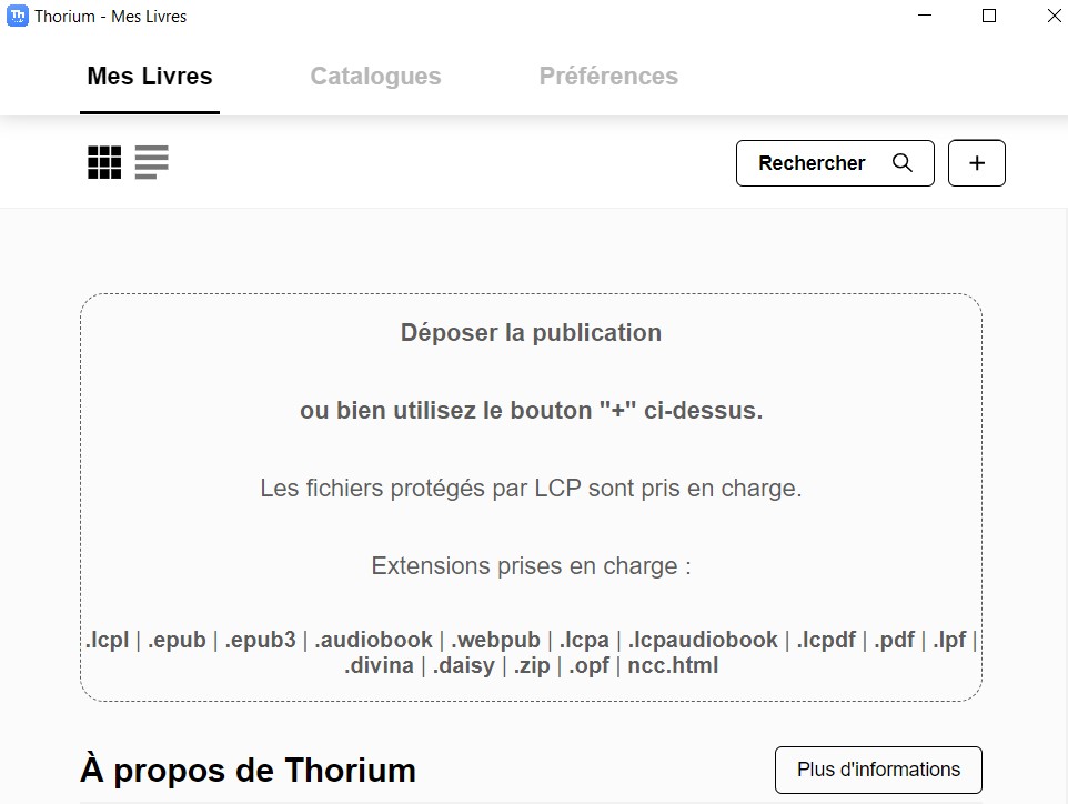 Les ouvrages de la bibliothèque numérique protégés par LCP seront pris en charge par l’application. Revenez dans l’onglet Mes Livres.